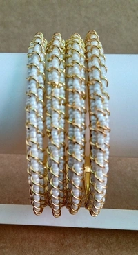 Fancy White Pearls Bangles Set
