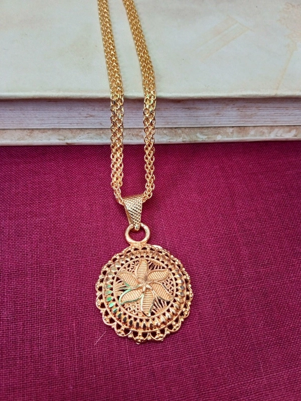 This is exquisite gold plated flower design Chain and pendant, making it a perfect accessory for any occasion. The chain and pendant is elegantly designed and crafted, adding a touch of sophistication to any outfit. The chain & Pendant is micro gold plated, giving it a luxurious and high-quality finish that will surely catch the eye. It is a must-have piece for any woman who appreciates fine jewelry and wants to add a touch of elegance to her look.
