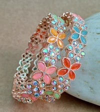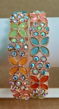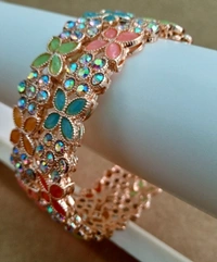 Introducing the stunning “Trendy Multi color Metal Patla Set” Collection. Perfect for adding a touch of elegance and sophistication for any traditional Indian outfit. Crafted with care and precision, the intricate design, inspired by the royal family processions of ancient India, is intricately etched into the surface of the bangles patla , creating a stunning visual effect. Made from high-quality alloy materials, the unique design ensures that It will complement any traditional outfit.