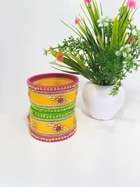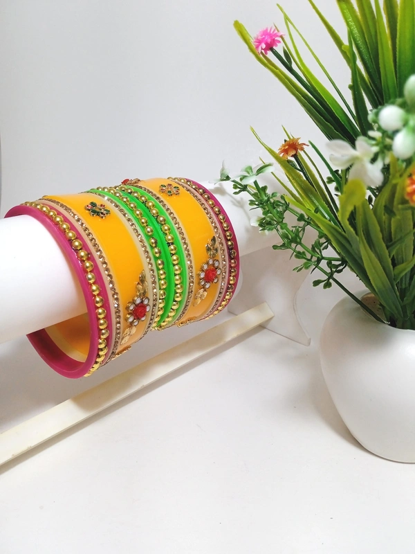 Made with High-Quality Artificial Kundan Materials by expert Craftsmanship, This is Rajasthani TraditionalDhalu Bangles is a piece you'll treasure for years to come. Whether you're looking for a Special gift for a loved one or a treat for yourself, this set is sure to impress. With its timeless design and exceptional quality, this set is perfect for any special occasion, from Weddings and formal events to date nights and parties. Order now and experience the ultimate in luxury and style with our Rajasthani Traditional Bangle.