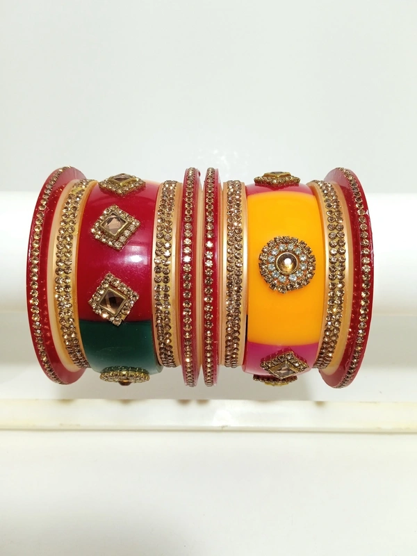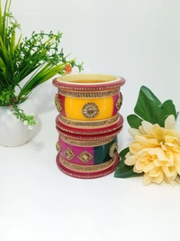 Made with High-Quality Artificial Kundan Materials by expert Craftsmanship, This is Rajasthani Traditional Dhalu Bangles is a piece you'll treasure for years to come. Whether you're looking for a Special gift for a loved one or a treat for yourself, this set is sure to impress. With its timeless design and exceptional quality, this set is perfect for any special occasion, from Weddings and formal events to date nights and parties. Order now and experience the ultimate in luxury and style with our Rajasthani Traditional Bangle.