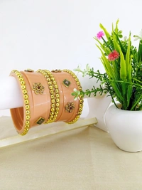 Made with High-Quality Artificial Kundan Materials by expert Craftsmanship, This is Rajasthani Traditional Dhalu Bangles is a piece you'll treasure for years to come. Whether you're looking for a Special gift for a loved one or a treat for yourself, this set is sure to impress. With its timeless design and exceptional quality, this set is perfect for any special occasion, from Weddings and formal events to date nights and parties. Order now and experience the ultimate in luxury and style with our Rajasthani Traditional Bangle.