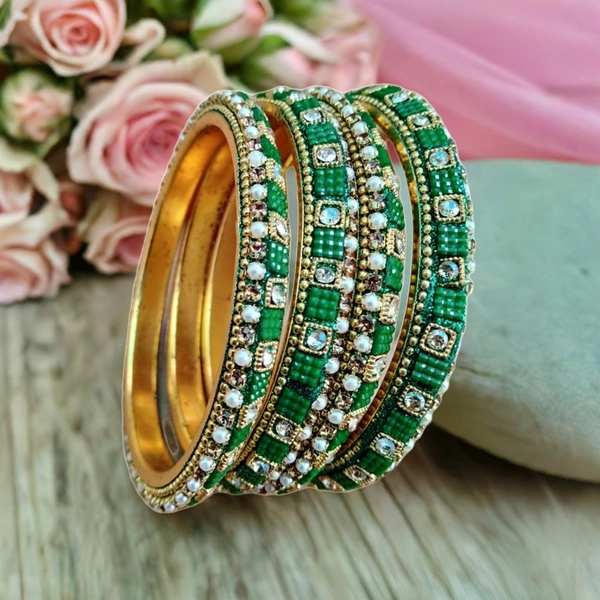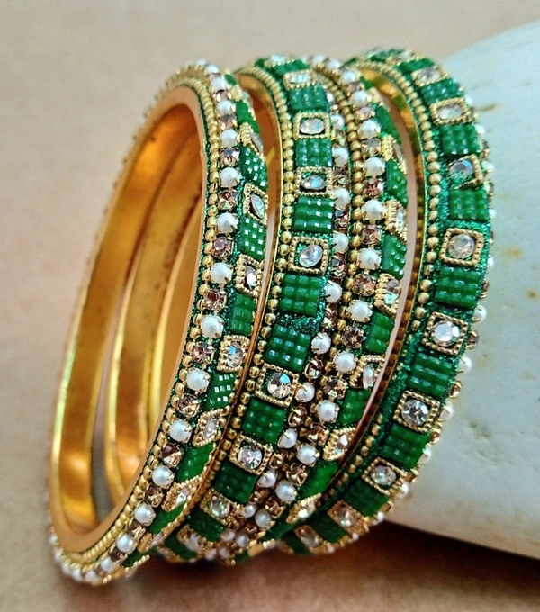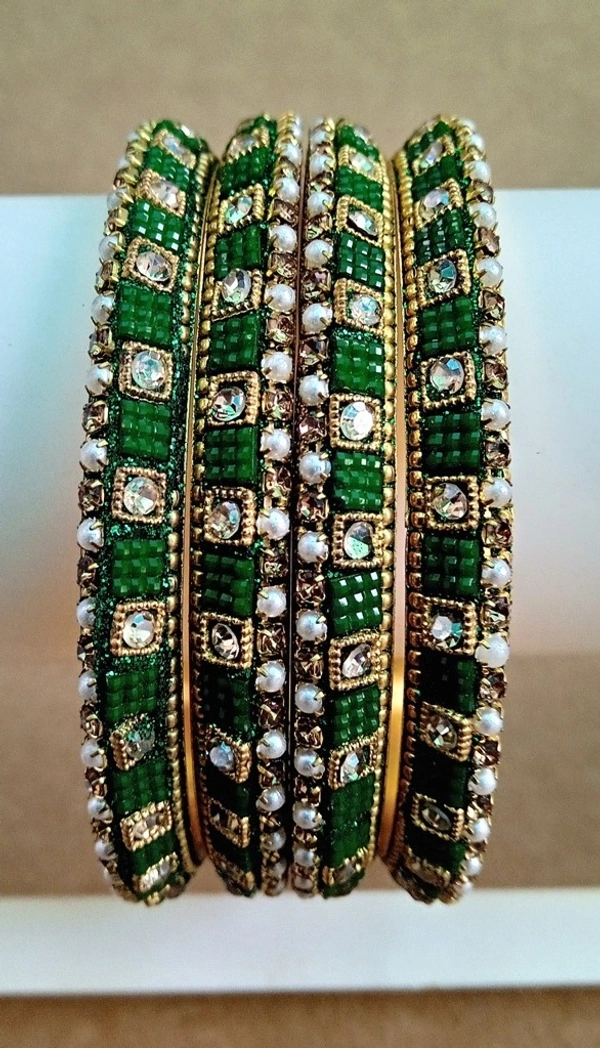Introducing the Stunning “Traditional Green Color Pachheli” Metal Bangles Set. These bangles are for make chooda, Doing mixing and matching for any occasion. Our Collection is perfect for adding a touch of elegance and sophistication to any traditional Indian outfit. Crafted with care and precision, the intricate design, inspired by the royal family processions of ancient India, is intricately etched into the surface of the bangles, creating a stunning visual effect. Made from high-quality alloy materials, the unique design ensures that they will complement any traditional outfit.