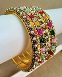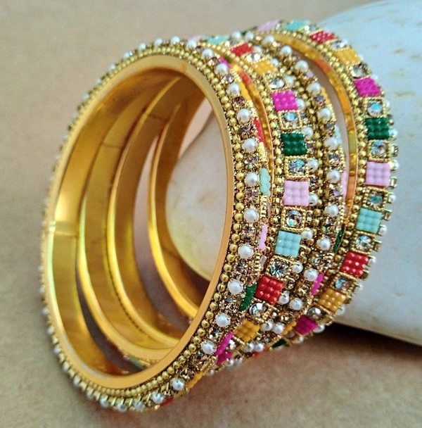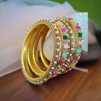 Introducing the Stunning “Traditional Multi Colors Pachheli” Metal Bangles Set. These bangles are for make chooda, Doing mixing and matching for any occasion. Our Collection is perfect for adding a touch of elegance and sophistication to any traditional Indian outfit. Crafted with care and precision, the intricate design, inspired by the royal family processions of ancient India, is intricately etched into the surface of the bangles, creating a stunning visual effect. Made from high-quality alloy materials, the unique design ensures that they will complement any traditional outfit.