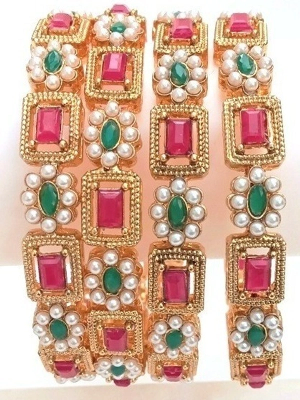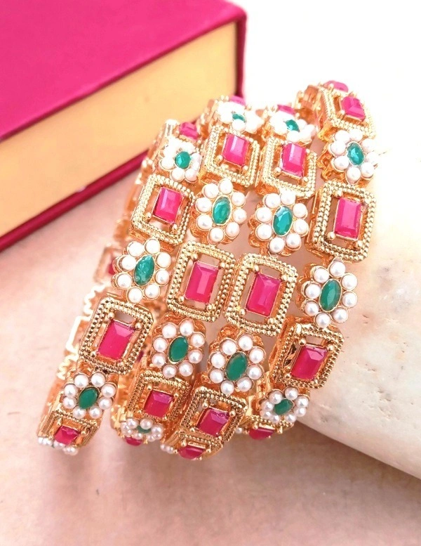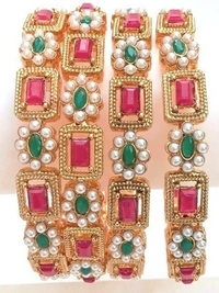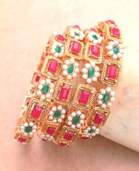Rajwadi Red & Green Kundan Metal Bangles Set.