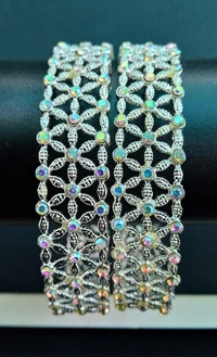 Enhance your outfit with these are “Stunning Silver Bangles” Set of 2 Pisces adorned with vibrant color. Perfect for adding a touch of elegance and sparkle to any ensemble, these bangles are versatile enough to be worn casually or for a special occasion. Made with high-quality materials, these bangles are sure to become a staple in your jewelry collection.