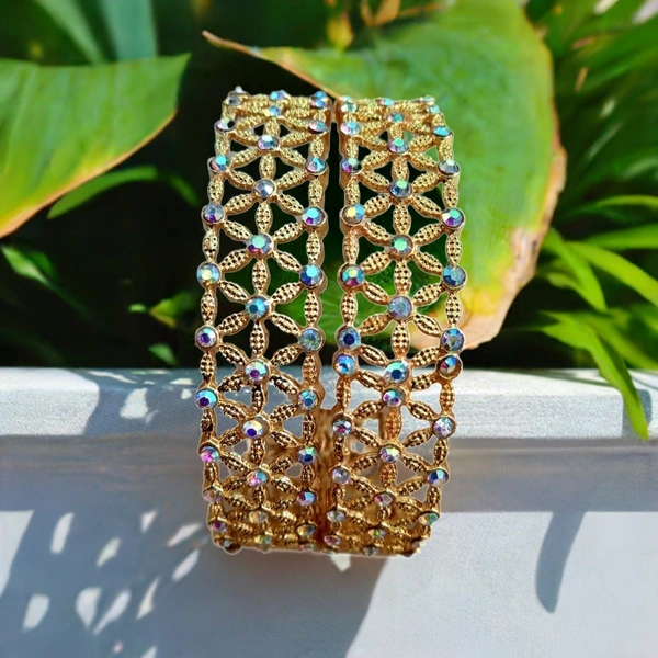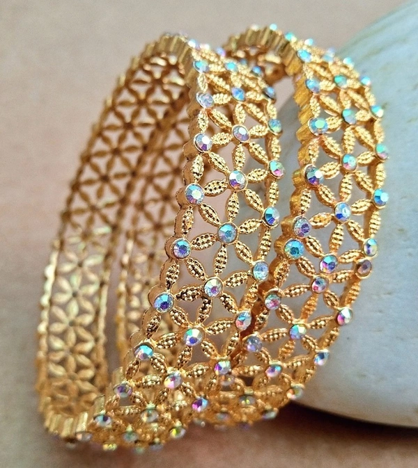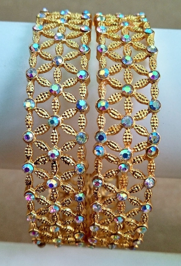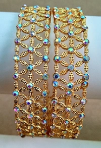 Enhance your outfit with these are “Stunning Golden Bangles” Set of 2 Pisces adorned with vibrant color. Perfect for adding a touch of elegance and sparkle to any ensemble, these bangles are versatile enough to be worn casually or for a special occasion. Made with high-quality materials, these bangles are sure to become a staple in your jewelry collection.
