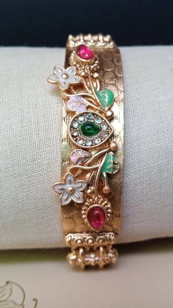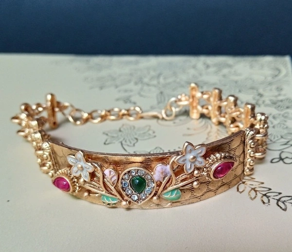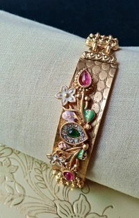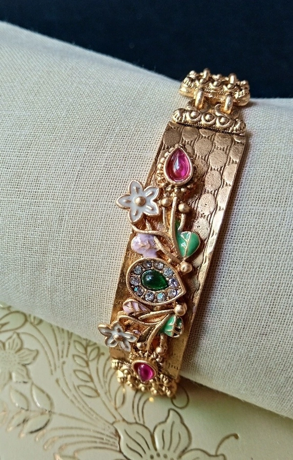 Indian Expert Goldsmith has crafted this Traditional Royal Bracelet Design. This beautiful bracelet is Matte finished high Gold Plated for a luxurious finish. Perfect for women and girls, it’s adding a touch of elegance and sophistication to any outfit. Elevate your style with this stunning place of jewelry.