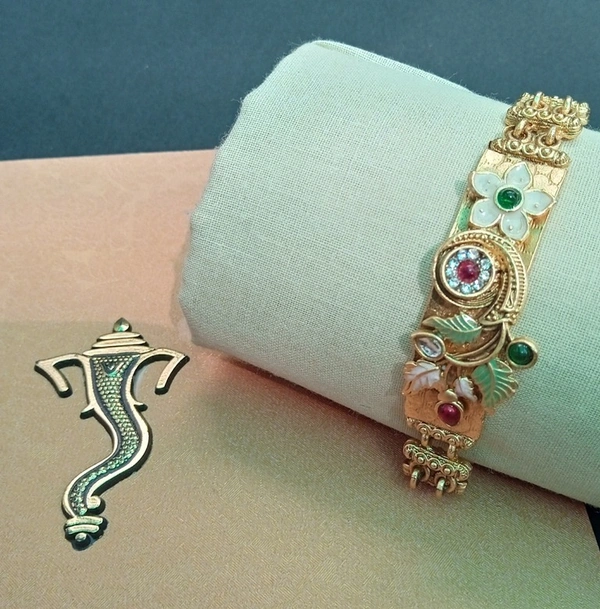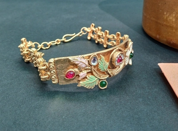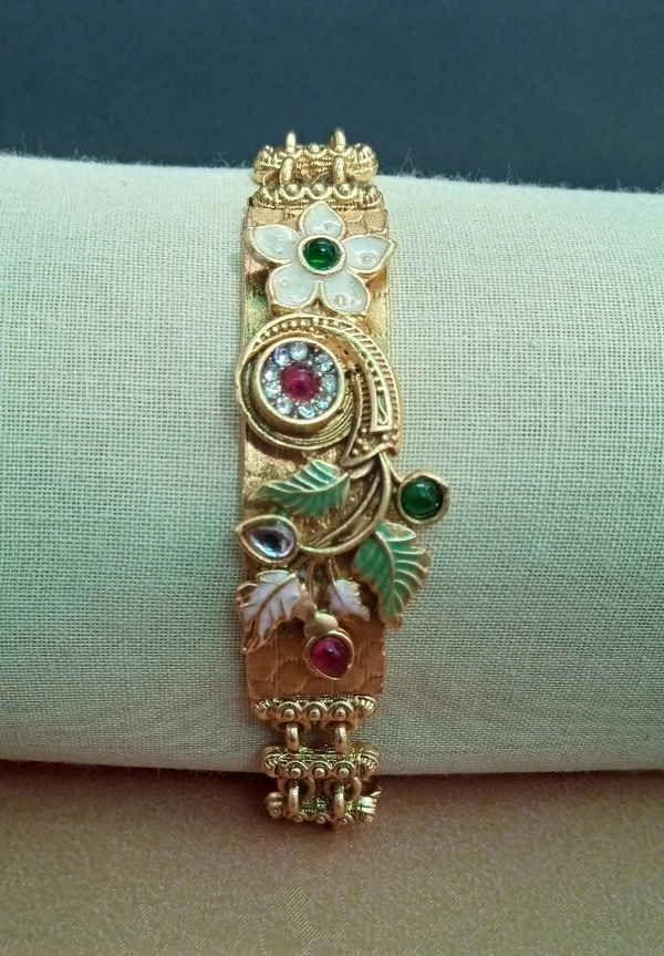 Traditional Rajwadi Brass Meenakari Kundan Bracelet.