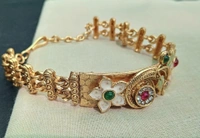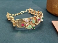 Indian Expert Goldsmith has crafted this Traditional Royal Bracelet Design. This beautiful bracelet is Matte finished high Gold Plated for a luxurious finish. Perfect for women and girls, it’s adding a touch of elegance and sophistication to any outfit. Elevate your style with this stunning place of jewelry.