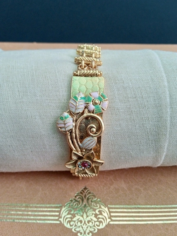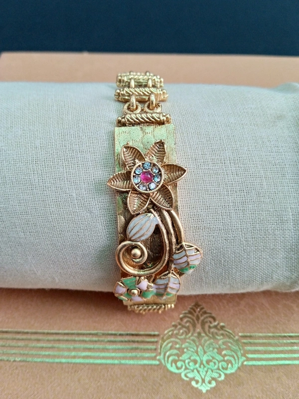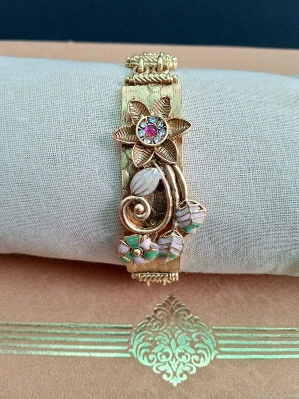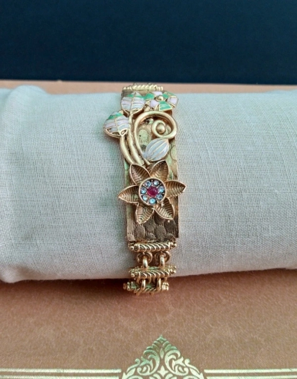 Traditional Rajwadi Brass Meenakari Kundan Bracelet.