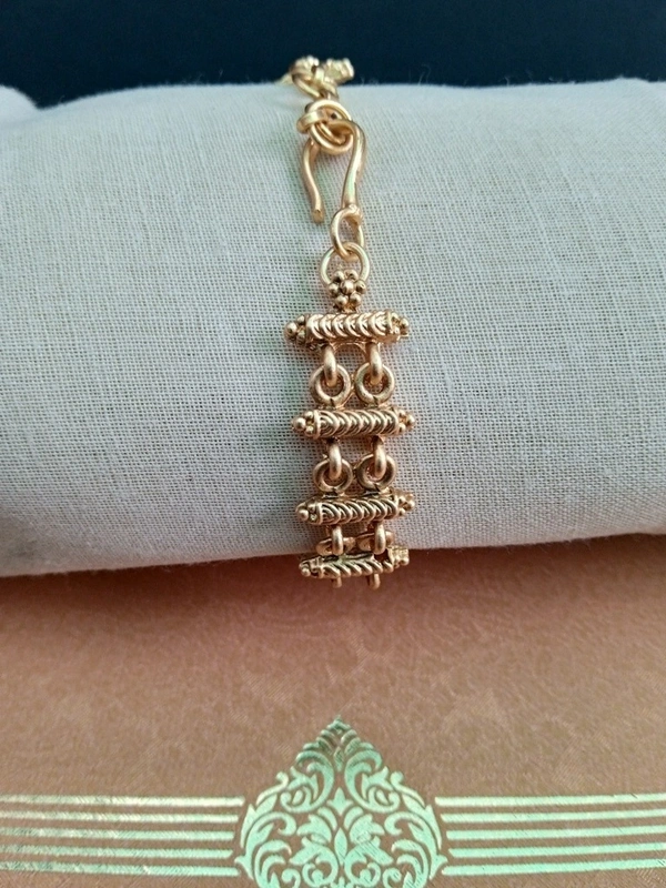 Indian Expert Goldsmith has crafted this Traditional Royal Bracelet Design. This beautiful bracelet is Matte finished high Gold Plated for a luxurious finish. Perfect for women and girls, it’s adding a touch of elegance and sophistication to any outfit. Elevate your style with this stunning place of jewelry.