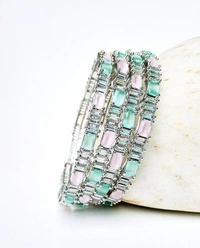 Made with High-quality Materials and expert Craftsmanship, our American Diamond Bangle is a piece you'll treasure for years to come. Whether you're looking for a Special gift for a loved one or a treat for yourself, this set is sure to impress. With its timeless design and exceptional quality, this set is perfect for any special occasion, from Weddings and formal events to date nights and parties. Order now and experience the ultimate in luxury and style with our American diamond Bangle.